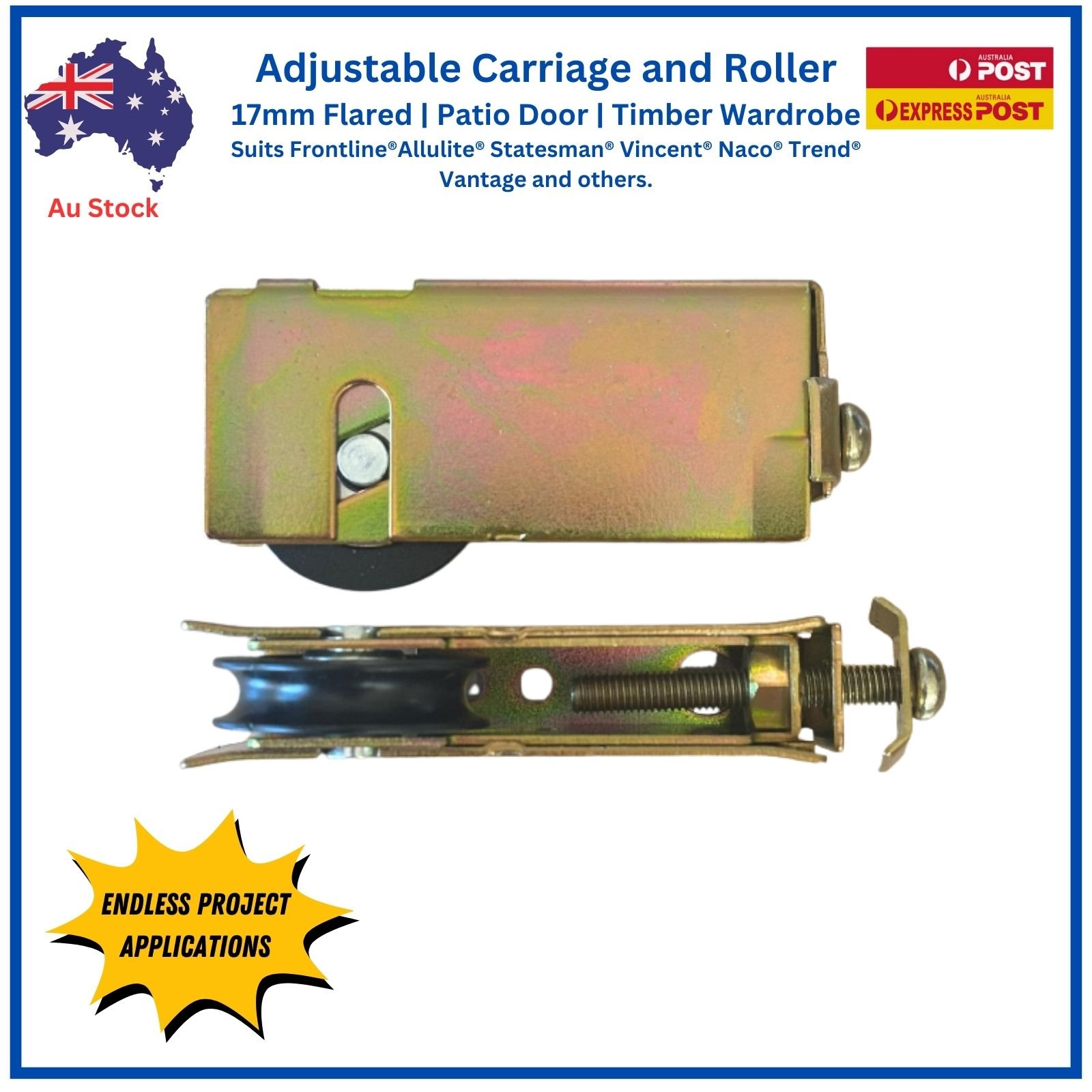 Adjustable Patio Door Carriage & Roller | 17mm Flared Wings | 25kg | Acetal Bearing Roller