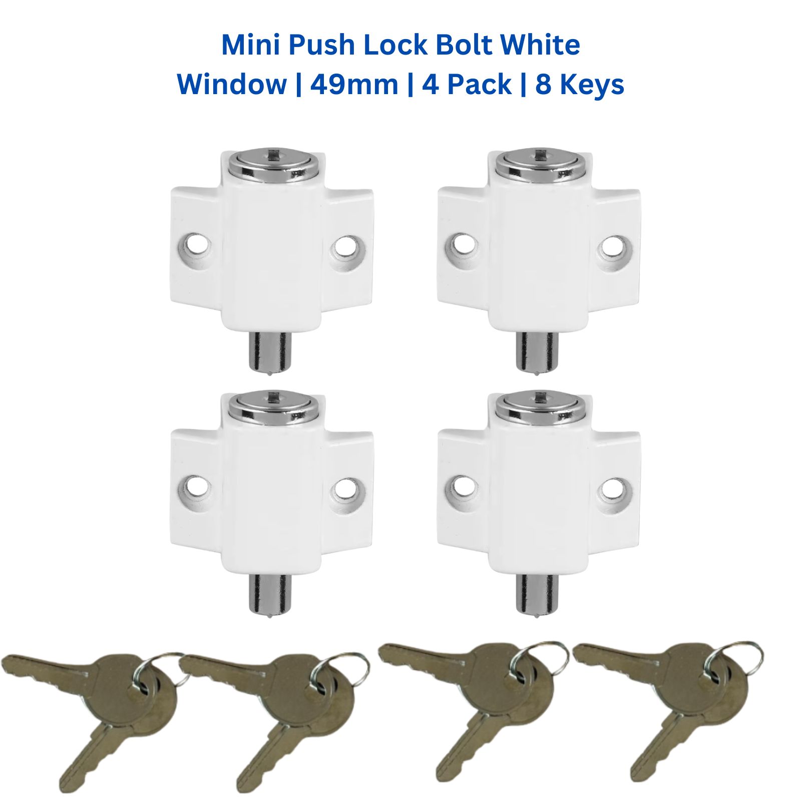 Mini Push Lock Door & Window Bolt | White | 4 Pack